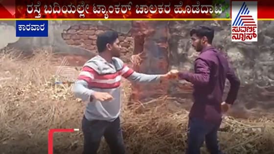 ಕಾರವಾರದಲ್ಲಿ ಟ್ಯಾಂಕರ್ ಚಾಲಕರ ಬೀದಿ ರಂಪ/ ಕಾರವಾರ ಪ್ರವೇಶಿಸುವ ವಿಚಾರದಲ್ಲಿ ಹೊಡೆದಾಟ/ ಪುಕ್ಕಟೆ ಮನರಂಜನೆ ನೀಡಿದ ಚಾಲಕರು