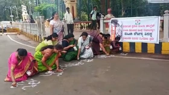 ರಂಗೋಲಿ ಚಿತ್ತಾರ ಬಿಡಿಸಿ ಮಹಿಳೆಯರ ಪ್ರತಿಭಟನೆ
