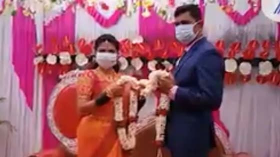 ಸಿಂಪಲ್ ಮದುವೆ; ಮಾಸ್ಕ್ ಧರಿಸಿ ಹಸೆಮಣೆ ಏರಿದ ಪೊಲೀಸ್ ಪೇದೆ!