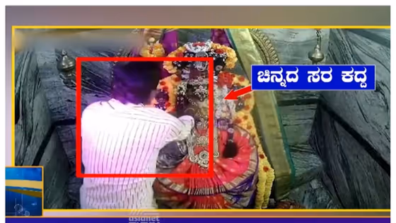 ಅಸಲಿಗೆ ಈ ಘಟನೆ ನಡೆದಿರೋದು ಆಂಧ್ರ ಪ್ರದೇಶದ ಅನ್ನಮಯ್ಯ ಜಿಲ್ಲೆಯಲ್ಲಿ, ಇಲ್ಲಿನ ಮದನಹಳ್ಳಿ ಪಟ್ಟಣದ ಬಾಟಗಂಗಮ್ಮ ದೇವಾಲಯದಲ್ಲಿ.. ಕಳ್ಳನೊಬ್ಬ ಯಾರಿಗೂ ಅನುಮಾನ ಬಾರದಂತೆ ಸಾಮಾನ್ಯ ಭಕ್ತರಂತೆ ಗರ್ಭಗುಡಿಯ ಒಳಗೆ ಬಂದು ಭಕ್ತಿಯಿಂದ ಕೈ ಮುಗಿದು, ದೇವರ ವಿಗ್ರಹದ ಮೇಲಿದ್ದ ಚಿನ್ನದ ಸರವನ್ನು ಎಗರಿಸಿ ಎಸ್ಕೇಪ್ ಆಗಿದ್ದಾನೆ.