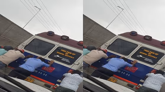 ಕೆಟ್ಟು ನಿಂತ ಆಂಬುಲೆನ್ಸ್ ತಳ್ಳಿದ ಹ್ಯಾರಿಸ್ ಪುತ್ರ ನಲಪಾಡ್