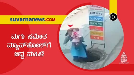 ಮೊಬೈಲ್ ಬಳಸ್ತಾ ಮಗು ಸಮೇತ ಫುಟ್ಪಾತ್ನಲ್ಲಿದ್ದ ಮ್ಯಾನ್ಹೋಲ್ಗೆ ಬಿದ್ದ ಮಹಿಳೆ