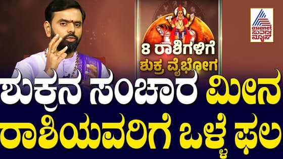 8 ರಾಶಿಯವರಿಗೆ ಶುಕ್ರ ಯೋಗ. ಮೀನರಾಶಿಯಲ್ಲಿ ಶುಕ್ರ ಸಂಚಾರ, ಏನೇನು ಬದಲಾಗುತ್ತೆ? ಶುಕ್ರನ ಸಂಚಾರದಿಂದ ಮೀನ ರಾಶಿಯವರಿಗೆ ಒಳ್ಳೆಯ ಫಲ | Effect Of Venus In Pisces | Horoscope in Kannada | astrology | astrology In Kannada Suvarna News | Kannada News | Latest Kannada News | Suvarna News 24x7 | ಕನ್ನಡ ಲೈವ್ ನ್ಯೂಸ್ | ಏಷ್ಯಾನೆಟ್ ಸುವರ್ಣ ನ್ಯೂಸ್