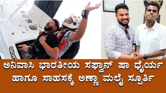 ಭಾರತದ ಫ್ಲ್ಯಾಗ್ ಹಿಡಿದು ಸ್ಕೈ ಡೈವಿಂಗ್ ಮಾಡಿದ ಸಫಾನ್ಗೆ ಅಣ್ಣಾಮಲೈ ಸ್ಫೂರ್ತಿ!