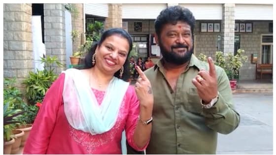 Karnataka Election 2023: ಪತ್ನಿ ಜೊತೆ ಬಂದು ಮತ ಹಾಕಿದ ನವರಸ ನಾಯಕ ಜಗ್ಗೇಶ್