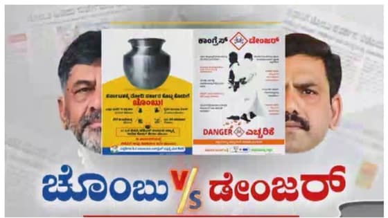 ರಂಗೇರುತ್ತಿದೆ ಲೋಕಸಭಾ ರಣಕಣ. ಎದ್ದು ನಿಂತಿದೆ ಜಾಹೀರಾತು(Advertisement) ಜಂಗೀಕುಸ್ತಿಯ ಹೂರಣ. ಒಬ್ರು ಖಾಲಿ ಚೊಂಬು ಅಂದ್ರೆ, ಇನ್ನೊಬ್ರು ಡೇಂಜರ್ ಅಂತಿದ್ದಾರೆ. ನೀವು ರಾಜ್ಯಕ್ಕೆ ಕೊಟ್ಟದ್ದು ಚೊಂಬು ಅಂತ ಕಾಂಗ್ರೆಸ್(Congress) ಹೇಳಿದ್ರೆ, ರಾಜ್ಯಕ್ಕೆ ಕಾಂಗ್ರೆಸ್ಯೇ ಡೇಂಜರ್ ಅಂತಿದೆ ಬಿಜೆಪಿ(BJP). ಏಟಿಗೆ ಏಟು, ಅಸ್ತ್ರಕ್ಕೆ ಪ್ರತ್ಯಸ್ತ್ರ. ರಣರಂಗದಲ್ಲಿ ಕೈ-ಕಮಲ ಕಲಿಗಳ ಮಧ್ಯೆ ಜಾಹೀರಾತು ಯುದ್ಧ. ಕಟ್ಟಪ್ಪನ ರೀತಿಯಲ್ಲಿ ಕಮಲ ಪಕ್ಷದ ರಕ್ಷಣೆಗೆ ನಿಂತ ದಳಪತಿಗಳು. ಒಬ್ಬರದ್ದು ಖಾಲಿ ಚೊಂಬು.. ಇನ್ನೊಬ್ಬರದ್ದು ಡೇಂಜರ್. ಒಬ್ಬರದ್ದು ಸೇರಾದ್ರೆ, ಇನ್ನೊಬ್ಬರದ್ದು ಸವ್ವಾ ಸೇರು. ಇದು ಲೋಕಸಭಾ ರಣರಂಗದಲ್ಲಿ ಕರ್ನಾಟಕದ(Karnataka) ಕಾಂಗ್ರೆಸ್ ಮತ್ತು ಬಿಜೆಪಿ ಮಧ್ಯೆ ಶುರುವಾಗಿರೋ ಚೊಂಬು Vs ಡೇಂಜರ್ ಜಟಾಪಟಿ, ಜಾಹೀರಾತು ಜಂಗೀಕುಸ್ತಿ. ಪ್ರಧಾನಿ ನರೇಂದ್ರ ಮೋದಿಯವ್ರು(Narendra Modi) ಲೋಕಸಭಾ ಚುನಾವಣಾ ಪ್ರಚಾರಕ್ಕೆ ಶನಿವಾರ ರಾಜ್ಯಕ್ಕೆ ಬಂದಿದ್ರು. ಚಿಕ್ಕಬಳ್ಳಾಪುರ ಮತ್ತು ಬೆಂಗಳೂರನಲ್ಲಿ ಸಮಾವೇಶಗಳನ್ನು ನಡೆಸಿ ಭಾಷಣ ಮಾಡಿದ್ರು. ಮೋದಿಯವ್ರು ಬರೋದನ್ನೇ ಕಾಯ್ತಾ ಇದ್ದ ಕಾಂಗ್ರೆಸ್ ಪಕ್ಷ, ಮೋದ ಆಗಮನಕ್ಕೆ ಒಂದು ದಿನ ಮೊದ್ಲೇ, ಅಂದ್ರೆ ಶುಕ್ರವಾರ ಖಾಲಿ ಚೊಂಬಿನ ಜಾಹೀರಾತೊಂದನ್ನು ನೀಡಿ ಮೋದಿಯವರನ್ನು ರಾಜ್ಯಕ್ಕೆ ವೆಲ್ಕಮ್ ಮಾಡಿತ್ತು.