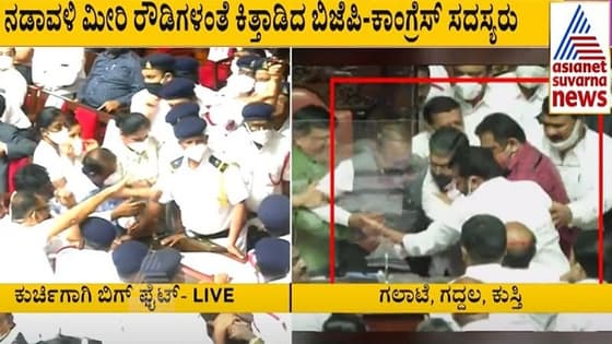 ವಿಧಾನ ಪರಿಷತ್ನಲ್ಲಿ ಕಾಂಗ್ರೆಸ್ ಶಾಸಕರು ಸಭಾಪತಿಗಳ ಕುರ್ಚಿಗಾಗಿ ಕಿತ್ತಾಡಿಕೊಂಡಿದ್ದಾರೆ. ಕಾಂಗ್ರೆಸ್ - ಬಿಜೆಪಿ ಸದಸ್ಯರು ಕೈಕೈ ಮಿಲಾಯಿಸಿದ್ದಾರೆ. ಪರಿಷತ್ ಹೈಡ್ರಾಮಾ ಭಾರೀ ಸದ್ದು ಮಾಡುತ್ತಿದೆ.