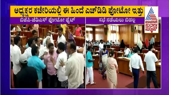 ದೇವೇಗೌಡರ ಪೋಟೋ ತೆರವು.. ಬಿಜೆಪಿ-ಜೆಡಿಎಸ್ ಸದಸ್ಯರ ಕಿತ್ತಾಟ!