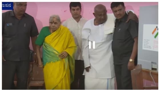 Karnataka election:ಮತ ಚಲಾಯಿಸಿದ ಹೆಚ್.ಡಿ. ದೇವೇಗೌಡ ದಂಪತಿ