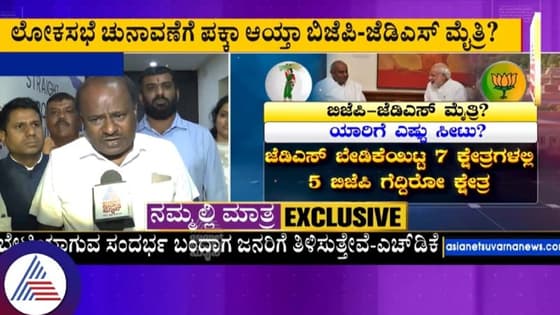 ಇದುವರೆಗೂ ಕೇವಲ ಊಹಾಪೋಹದ ಹಂತದಲ್ಲಿ ಇದ್ದ ಬಿಜೆಪಿ ಜೆಡಿಎಸ್ ಮೈತ್ರಿ ಈಗ ಪಕ್ಕಾ ಆಗುವ ಲಕ್ಷಣಗಳು ಘೋಚರಿಸುತ್ತಿದೆ. ಸುವರ್ಣ ನ್ಯೂಸ್ ಗೆ ಮಾಜಿ ಸಿಎಂ ಹೆಚ್ ಡಿ ಕುಮಾರಸ್ವಾಮಿ ಈ ಬಗ್ಗೆ ಎಕ್ಸ್ಕ್ಲೂಸಿವ್ ಮಾಹಿತಿ ನೀಡಿದ್ದಾರೆ.