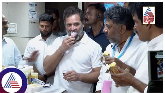 ನಂದಿನಿ ಬೂತ್ನಲ್ಲಿ ಪೇಡಾ ತಿಂದು ಐಸ್ಕ್ರೀಂ ಸವಿದ ರಾಹುಲ್ ಗಾಂಧಿ