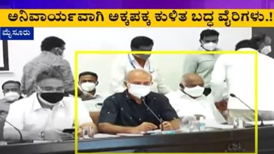 ಮೈಸೂರು, (ಜೂನ್.19): ಮಾತಲ್ಲೇ ಏಟು-ತಿರುಗೇಟು ಕೊಡುತ್ತಿದ್ದ ರಾಜಕೀಯ ಬದ್ಧವೈರಿಗಳು ಇದೀಗ ಅನಿವಾರ್ಯವಾಗಿ ಅಕ್ಕಪಕ್ಕ ಕುಳಿತುಕೊಂಡಿದ್ದಾರೆ.