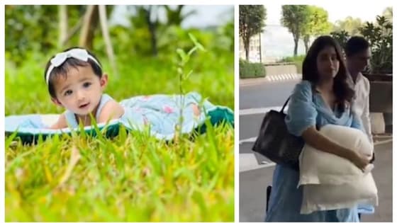 ಹೇಗಿದ್ದಾಳೆ ನೋಡಿ ಧ್ರುವ ಸರ್ಜಾ ಮಗಳು? : ತಲೆದಿಂಬು ಹಿಡ್ಕೊಂಡು ಜಾಹ್ನವಿ ಕಪೂರ್ ಹೊರಟಿದ್ದೆಲ್ಲಿಗೆ ?