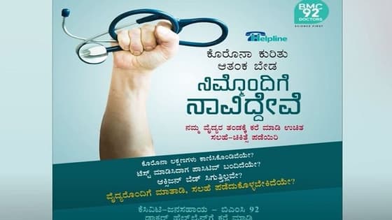 ಕೊರೋನಾ ಲಕ್ಷಣಗಳು ಕಾಣಿಸಿಕೊಂಡಿವೆಯೇ? ಟೆಸ್ಟ್ ಮಾಡಿಸಿದಾಗ ಪಾಸಿಟಿವ್ ಬಂದಿದೆಯೇ? ಆಕ್ಸಿಜನ್ ಬೆಡ್ ಸಿಗುತ್ತಿಲ್ಲವೆ? ವೈದ್ಯರೊಂದಿಗೆ ಮಾತಾಡಿ ಸಲಹೆ ಪಡೆದುಕೊಳ್ಳಬೇಕಿದೆಯೇ? ನಿಮಗಾಗಿ ಇಲ್ಲಿದೆ ಹೆಲ್ಪ್ ಲೈನ್ ಕರೆ ಮಾಡಿ....