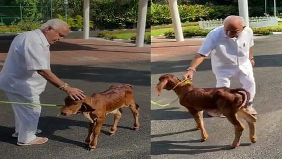 ಮುದ್ದಾದ ಕರುವಿನೊಂದಿಗೆ ಸಿಎಂ ಆಟ/ ವಾಕಿಂಗ್ ಗೆ ತೆರಳಿವ ಮುನ್ನ ಕರುವಿನೊಂದಿಗೆ ಕಾಲ ಕಳೆದ ಸಿಎಂ/ ಸೋಶಿಯಲ್ ಮೀಡಿಯಾದಲ್ಲಿ ವೈರಲ್ ಆದ ವಿಡಿಯೋ
