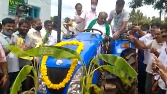 ಬೆಂಗಳೂರು (ಜೂ. 02): ಮಾಜಿ ಸಿಎಂ ಎಚ್ಡಿ ಕುಮಾರಸ್ವಾಮಿ ಮಣ್ಣಿನ ಮಗ ಎನ್ನುವುದನ್ನು ಸಾಬೀತುಪಡಿಸಿದ್ದಾರೆ. ಚನ್ನಪಟ್ಟಣ ತಾಲೂಕಿನ ಸುಣ್ಣಘಟ್ಟ ಗ್ರಾಮದಲ್ಲಿ ಟ್ರಾಕ್ಟರ್ ಏರಿದ್ದಾರೆ. ಕೃಷಿ ಯಂತ್ರೋಪಕರಣಗಳ ಬಾಡಿಗೆ ಕೇಂದ್ರ ಉದ್ಘಾಟಿಸಿ ಎಚ್ಡಿಕೆ ಟ್ರಾಕ್ಟರ್ ಏರಿದ್ದಾರೆ. ರೈತರು, ಕಾರ್ಯಕರ್ತರು ಭಾರೀ ಸಂಖ್ಯೆಯಲ್ಲಿ ಜಮಾವಣೆಗೊಂಡಿದ್ದು ಸಾಮಾಜಿಕ ಅಂತರವನ್ನು ಮರೆತಿದ್ದಾರೆ.
