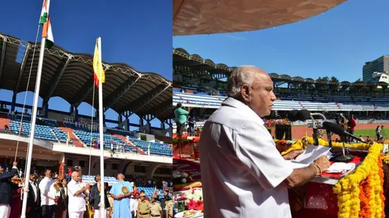 ಬೆಂಗಳೂರು [ನ.01]: ಬೆಂಗಳೂರಿನ ಕಂಠೀರವ ಸ್ಟೇಡಿಯಂನಲ್ಲಿ ಕನ್ನಡದ ಕಲರವ ಜೋರಾಗಿತ್ತು. ಮುಖ್ಯಮಂತ್ರಿ ಬಿ.ಎಸ್.ಯಡಿಯೂರಪ್ಪ ಧ್ವಜಾರೋಹಣ ನೆರವೇರಿಸಿದರು. ಇಲ್ಲಿ ಶಾಲಾ ಮಕ್ಕಳಿಂದ ವಿವಿಧ ರೀತಿಯ ಸಾಂಸ್ಕೃತಿಕ ಕಾರ್ಯಕ್ರಮಗಳು ನಡೆದು ಅದ್ದೂರಿಯಾಗಿ ಕನ್ನಡಮ್ಮನ ಹಬ್ಬವನ್ನು ಮಾಡಲಾಯಿತು.