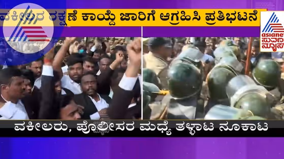 ವಕೀಲರ ರಕ್ಷಣೆ ಕಾಯ್ದೆ ಜಾರಿಗೆ ಆಗ್ರಹಿಸಿ ಪ್ರತಿಭಟನೆ; ಪೊಲೀಸರೊಂದಿಗೆ ತಳ್ಳಾಟ, ನೂಕಾಟ