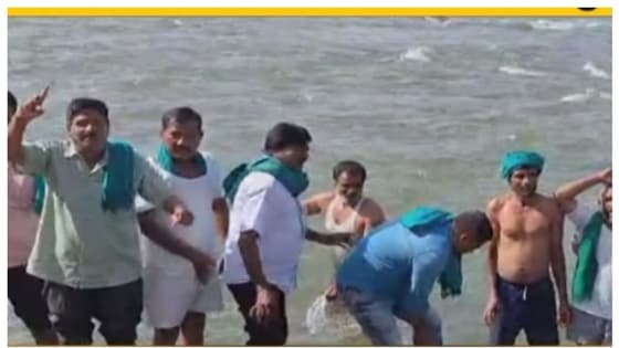 ಮಳೆ ಕೊರತೆ ಮಧ್ಯೆ ತಮಿಳುನಾಡಿಗೆ ನೀರು ರಿಲೀಸ್: ಸಿಟ್ಟಿಗೆದ್ದ ಕಾವೇರಿ ಕೊಳ್ಳದ ರೈತರಿಂದ ನೀರಿಗಿಳಿದು ಪ್ರೊಟೆಸ್ಟ್..!