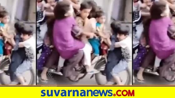 ಬೈಕ್ನಲ್ಲಿ 12 ಮಕ್ಕಳನ್ನು ಕೂರಿಸಿಕೊಂಡು ಸ್ಟಂಟ್
