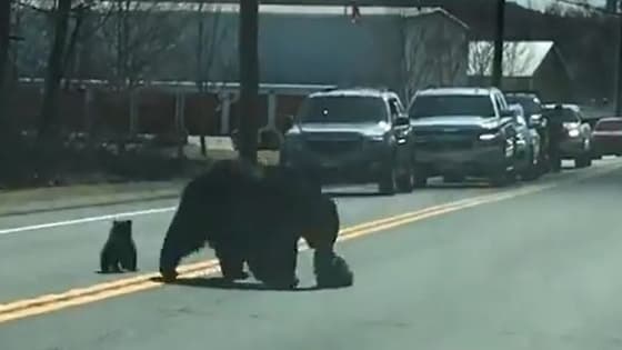 ಮರಿ ಜೊತೆ ರಸ್ತೆ ದಾಟಲು ಹರಸಾಹಸ ಪಟ್ಟ ತಾಯಿ ಕರಡಿ: ವಿಡೀಯೋ ವೈರಲ್!
