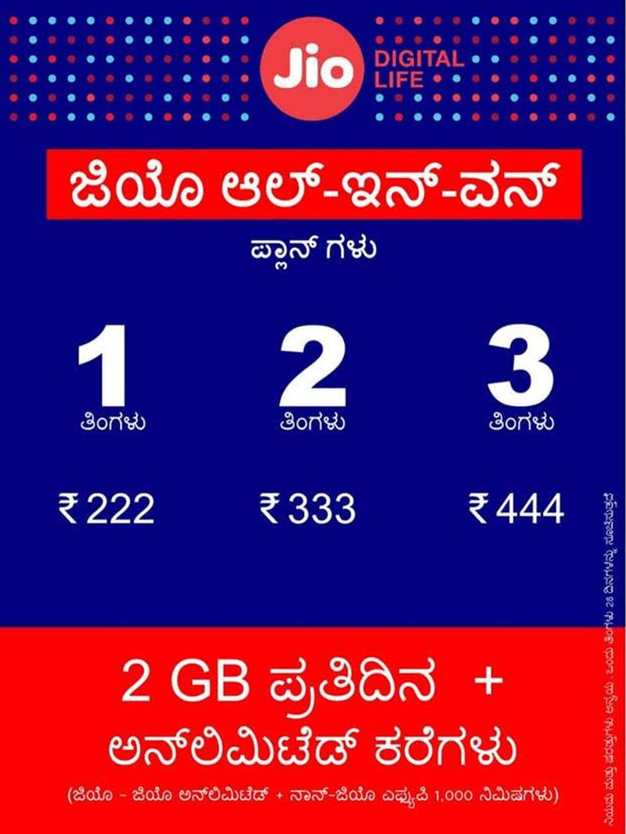 ಎಲ್ಲ ಸೇವೆಗಳೂ ಸೇರಿದ ಅಪರಿಮಿತ ಪ್ಲಾನ್ಗಳು ಇದೀಗ ಒಂದೇ ಪ್ಲಾನ್ನಲ್ಲಿ! ರೂ. 222, ರೂ. 333, ರೂ. 444 ದರಗಳ ಮೂಲಕ ಶುಲ್ಕದ ಸರಳತೆಯ ಮುಂದುವರಿಕೆ ಹೆಚ್ಚು ಡೇಟಾ, ಹೆಚ್ಚು ವಾಯ್ಸ್, ಹೆಚ್ಚು ಮೌಲ್ಯ!