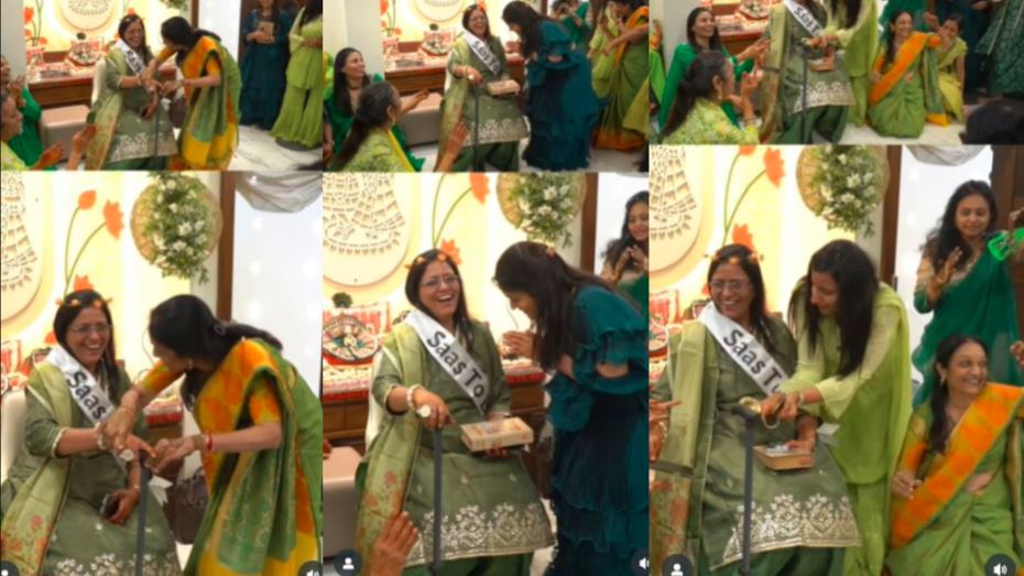ಮನೆಯ ಹೆಣ್ಣುಮಕ್ಕಳು ಹೊಸದಾಗಿ ಅತ್ತೆಯಾಗುತ್ತಿರುವ ಮಹಿಳೆಗೆ ವಿಶಿಷ್ಟವಾದ 'ಸಾಸ್ ಟು ಬಿ' ಆಚರಣೆ ಮಾಡಿದ್ದಾರೆ. ಈ ತಮಾಷೆಯ ಆಚರಣೆಯಲ್ಲಿ ಹೊಸ ಅತ್ತೆಗೆ ಕಿರೀಟ, ಕನ್ನಡಕ, ಊರುಗೋಲು ಮುಂತಾದವುಗಳನ್ನು ನೀಡಿ, ಸೊಸೆಯನ್ನು ಸ್ವಾಗತಿಸಲು ಸಿದ್ಧಪಡಿಸಿದ್ದಾರೆ.