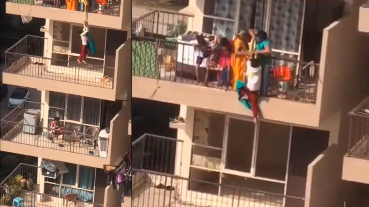 ಹರ್ಯಾಣದ ಫರಿದಾಬಾದ್ನ ಅಪಾರ್ಟ್ಮೆಂಟ್ ಒಂದರಲ್ಲಿ, ಕೆಳಮಹಡಿಗೆ ಬಿದ್ದ ಸೀರೆಯನ್ನು ತರಲು ತಾಯಿಯೊಬ್ಬಳು ತನ್ನ ಮಗನನ್ನೇ ಮತ್ತೊಂದು ಸೀರೆಯ ಸಹಾಯದಿಂದ ಕೆಳಗೆ ಇಳಿಸಿದ್ದಾಳೆ. ಮಗನ ಜೀವವನ್ನು ಅಪಾಯಕ್ಕೆ ತಳ್ಳಿದ ಈ ಘಟನೆಯ ವೀಡಿಯೋ ವೈರಲ್ ಆಗಿದ್ದು, ತಾಯಿಯ ವಿರುದ್ಧ ತೀವ್ರ ಆಕ್ರೋಶ ವ್ಯಕ್ತವಾಗಿದೆ.