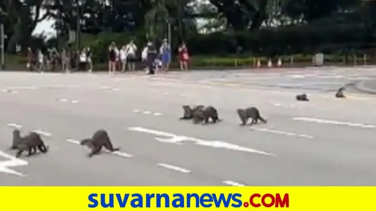 ಸಿಂಗಾಪುರದಲ್ಲಿ ನೀರು ನಾಯಿಗಳ ಹಿಂಡು ನೀರು ಬಿಟ್ಟು ರಸ್ತೆಗಳಿದಿದ್ದು, ಈ ವೇಳೆ ವಾಹನಗಳಿಂದ ತುಂಬಿದ್ದ ರಸ್ತೆಯನ್ನು ದಾಟಲು ಟ್ರಾಫಿಕ್ ಪೊಲೀಸ್ ಈ ನೀರುನಾಯಿಗಳಿಗೆ ನೆರವಾಗಿದ್ದಾರೆ. ರಸ್ತೆಯಲ್ಲಿ ಸಂಚಾರವನ್ನು ಕೆಲ ಕಾಲ ನಿಲ್ಲಿಸುವ ಮೂಲಕ ನೀರು ನಾಯಿಗಳು ರಸ್ತೆ ದಾಟಿ ಮತ್ತೊಂದೆಡೆ ತಲುಪಲು ಸಹಾಯ ಮಾಡಿದ್ದಾರೆ. ಸಿಂಗಾಪುರದ ಅಧ್ಯಕ್ಷೀಯ ಭವನದ ಹೊರಗಿನ ಮಲ್ಟಿಲೇನ್ ರಸ್ತೆಯಲ್ಲಿ ಈ ದೃಶ್ಯ ಕಂಡು ಬಂದಿದ್ದು, ಕ್ಯಾಮರಾದಲ್ಲಿ ಸೆರೆಯಾಗಿದೆ. ವೀಡಿಯೊದಲ್ಲಿ ಪೊಲೀಸರು ನೀರುನಾಯಿಗಳ ಕುಟುಂಬವನ್ನು ಬಿಡುವಿಲ್ಲದ ರಸ್ತೆಯನ್ನು ಸುರಕ್ಷಿತವಾಗಿ ದಾಟಲು ಸಹಾಯ ಮಾಡಿದರು.