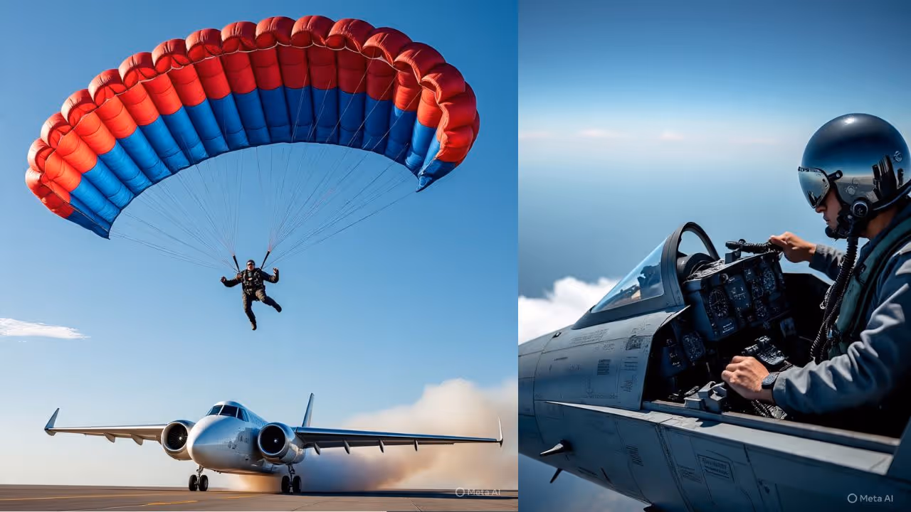 ಪತನವಾಗುತ್ತಿರುವ ವಿಮಾನದಿಂದ ಪ್ಯಾರಾಚೂಟ್ ಮೂಲಕ ಪೈಲಟ್ಗಳು ಹೊರಬರುವರಾದರೂ, ಹೋಗಿ ಬೀಳುವ ಜಾಗ ಎಂಥದ್ದೆಂದು ತಿಳಿದಿರುವುದಿಲ್ಲ. ಹಾಗಾಗಿ ನೆಲ ಮುಟ್ಟುತ್ತಿದ್ದಂತೆ ತಮ್ಮ ದೈಹಿಕ ಸ್ಥಿತಿಯನ್ನು ಪರಿಶೀಲಿಸಿಕೊಂಡು, ಕದಲಲು, ನಡೆಯಲು ಸಮರ್ಥನಾಗಿರುವೆನೇ ಎಂದು ನೋಡಿಕೊಳ್ಳುತ್ತಾರೆ. ಗಾಯಗಳಾಗಿದ್ದರೆ ಪ್ರಥಮ ಚಿಕಿತ್ಸೆ ಕೊಟ್ಟುಕೊಳ್ಳುತ್ತಾರೆ.